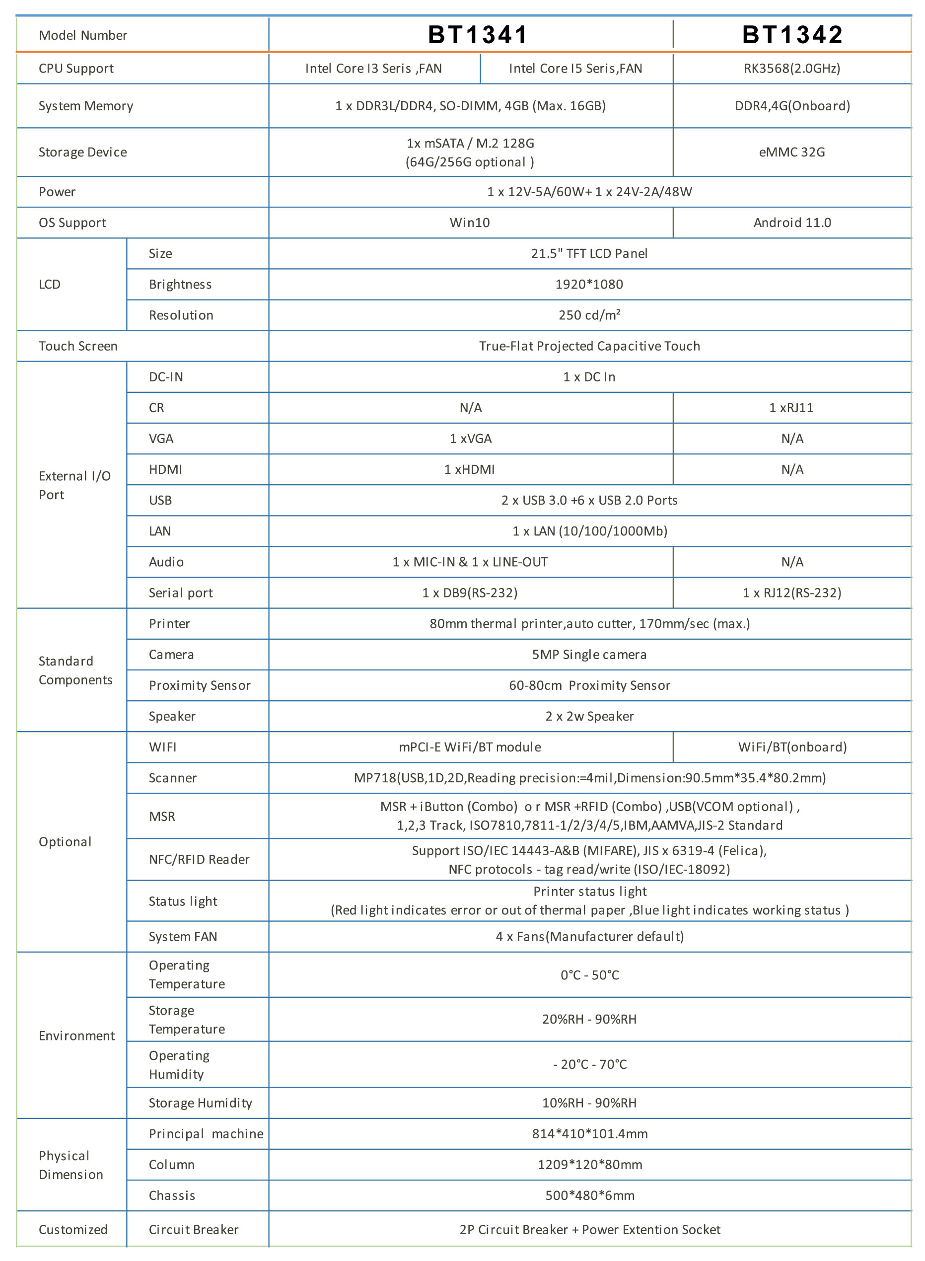 ⭐21.5" TFT PCT, RK3568 CPU ,4GB DDR4, 32GB eMMC FLASH