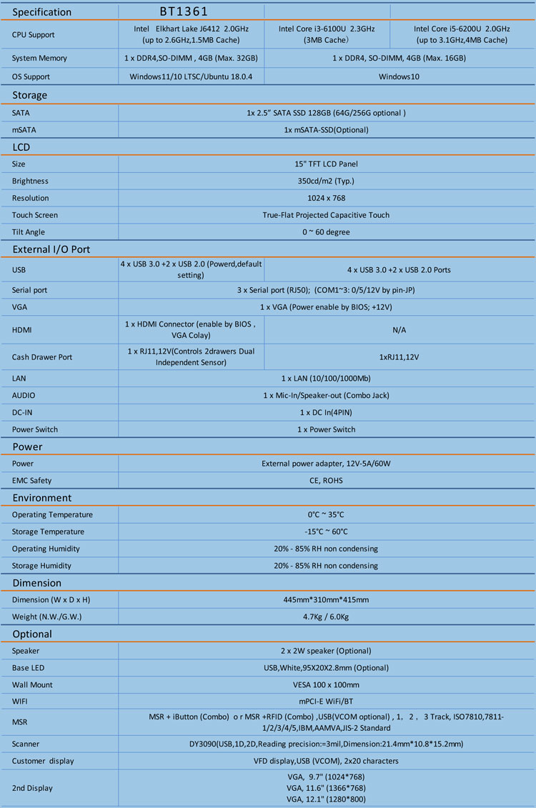 ⭐15" TFT PCT, Intel J6412 CPU ,4GB DDR4, 128GB SSD