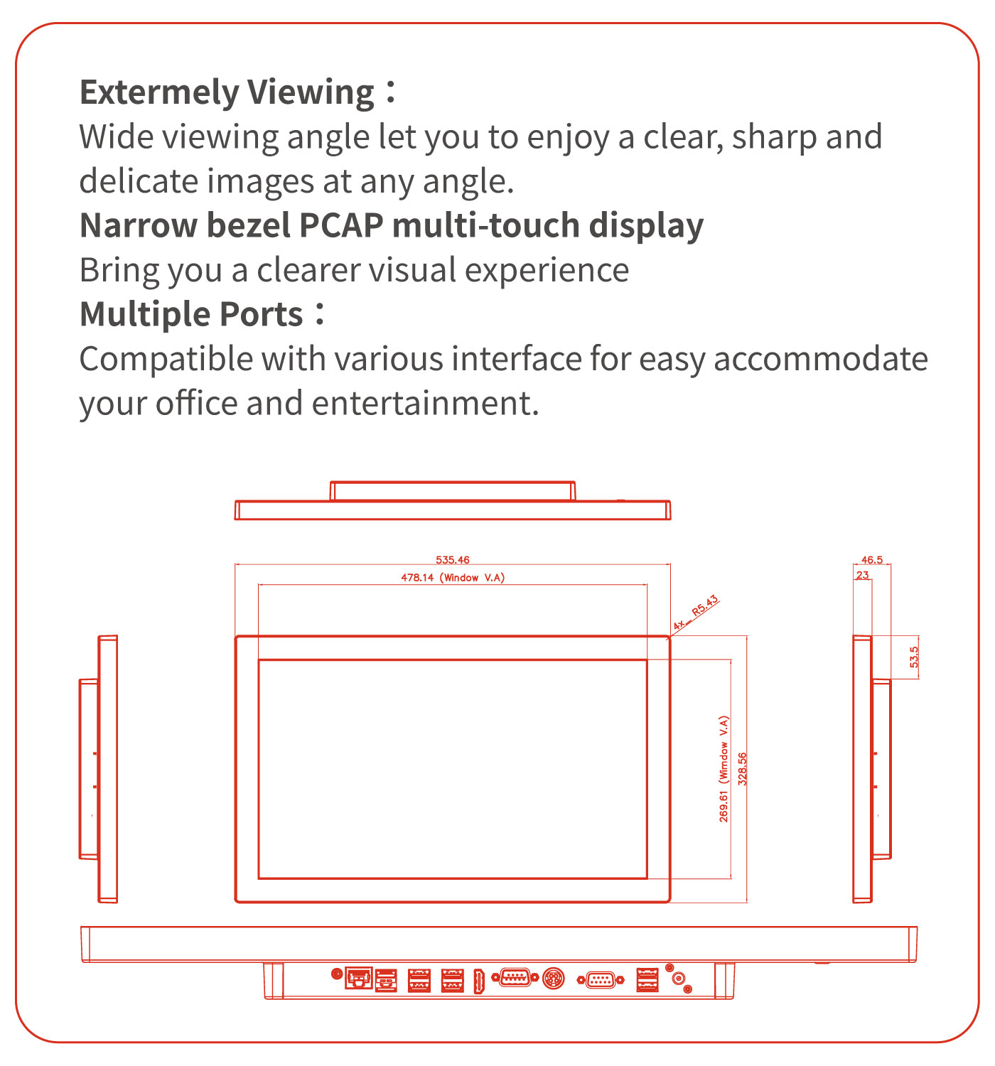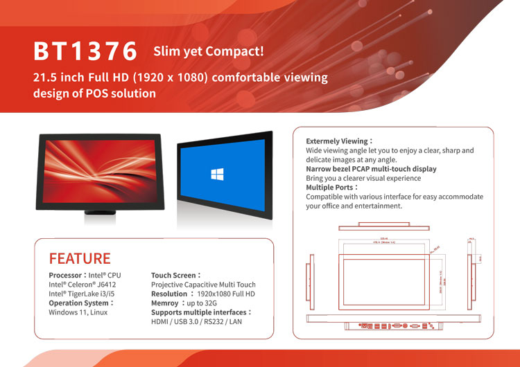 ⭐Fan Free 21.5" TFT PCT, 1920*1080 (350cd/m2)