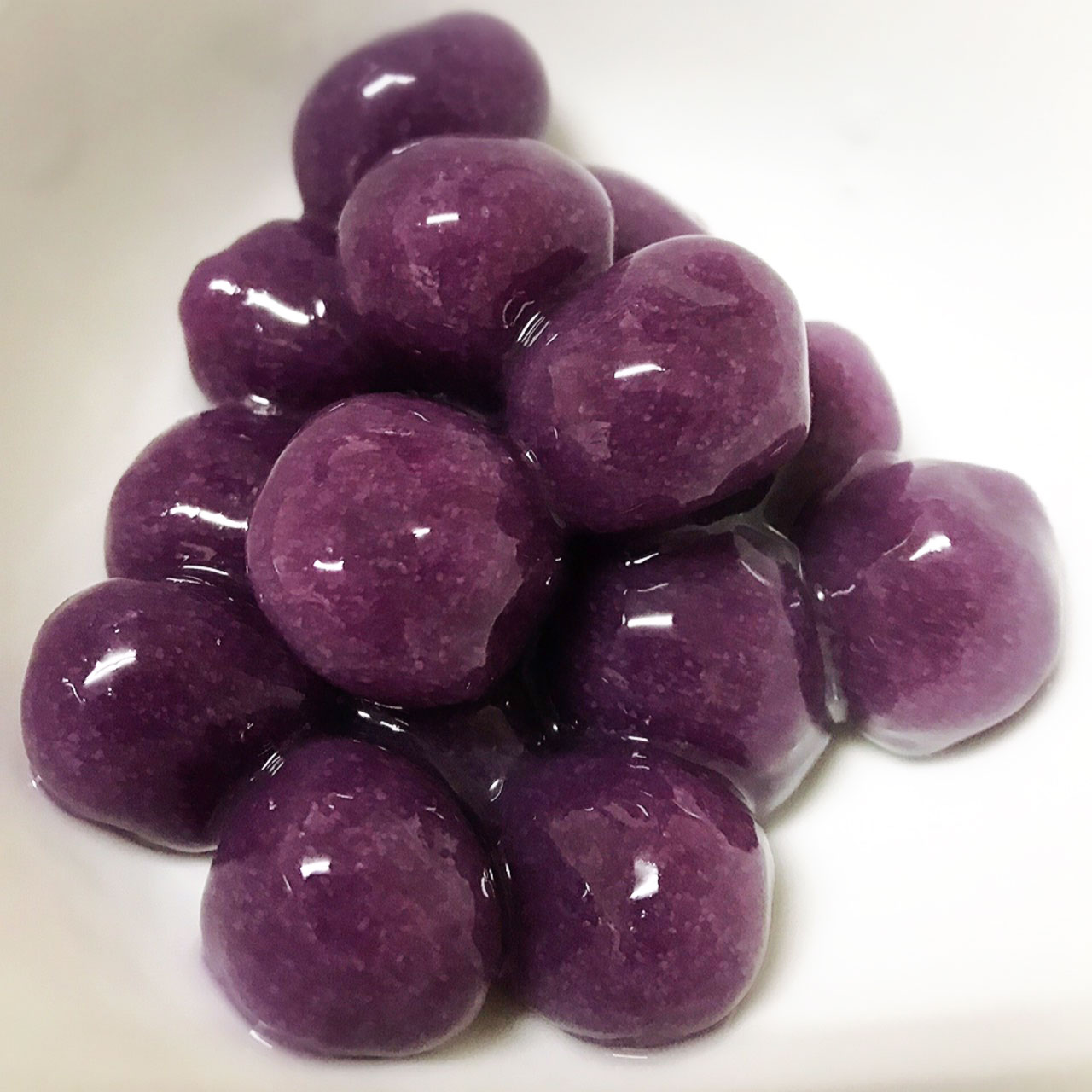 3.粉團量五倍以上水,燒開沸騰放入紫地瓜圓,煮至再次沸騰持續煮25 分鐘.