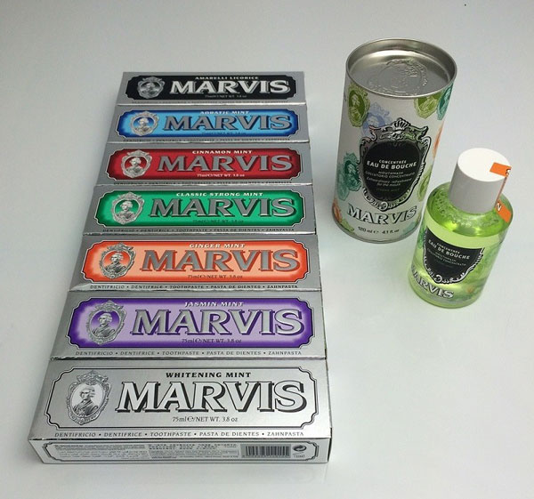 Marvis produceert mondverzorgingsproducten in opvallende smaken en unieke verpakkingen. Naast mondwater zijn er ook diverse tandpasta’s verkrijgbaar, waaronder de volgende varianten: