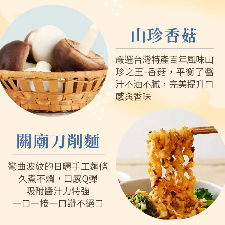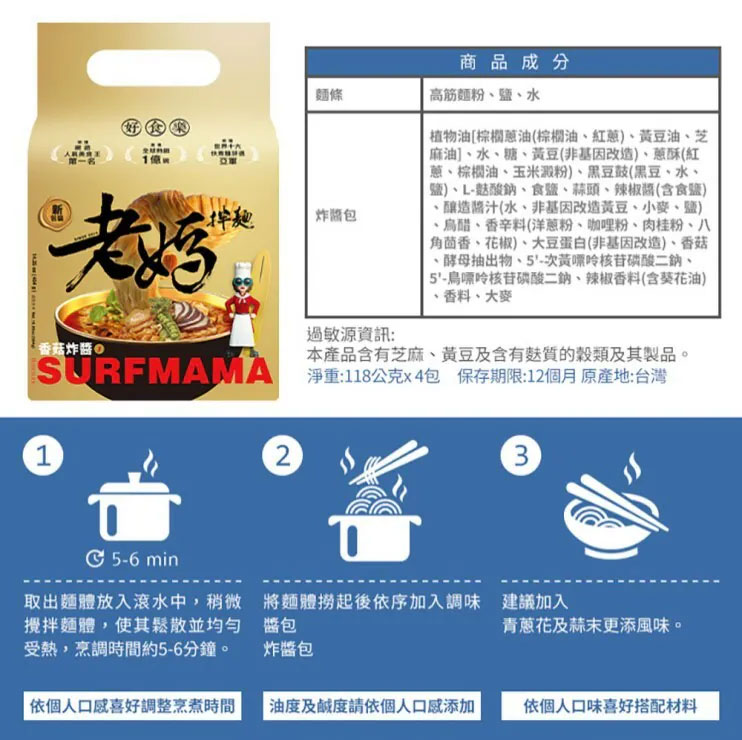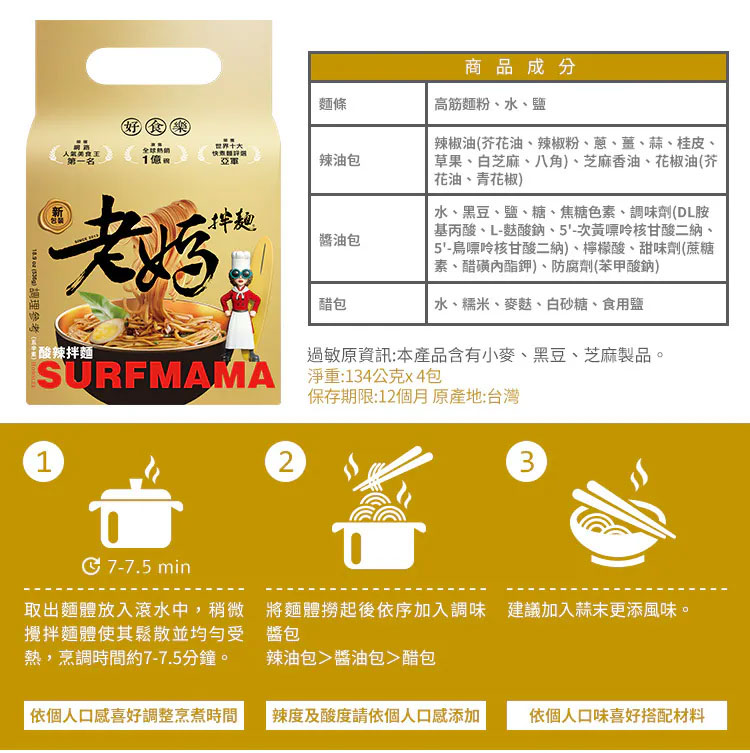 「老媽拌麵」秉持回歸食材原味精神,每項產品採用天然食材製造,堅持不添加人工香料,為支持本土農產品,使用在地好食材不斷研發獨創口味,以做出「食物級食品」為品牌的核心價值,日曬關廟麵Q彈快熟不軟爛的特性,搭配精製醬包,只要4分鐘就能享受即食的美味,透過網路無國界傳播目前全球已開發多個販售通路,以讓華人市場都吃得到道地中華美食為願景,讓一碗簡單的拌麵,吃出美味、吃的健康,吃得到家鄉的味道。