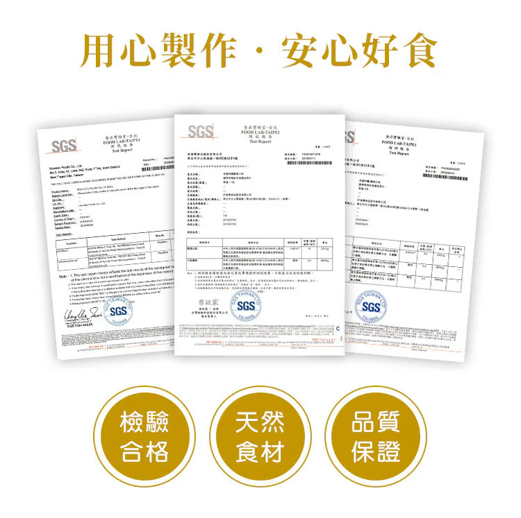 傳承古法手工精製,麵條以日光自然曬乾,絕無添加防腐藥劑,香Q可口風味獨特,煮後湯汁不混濁,久煮不爛。
