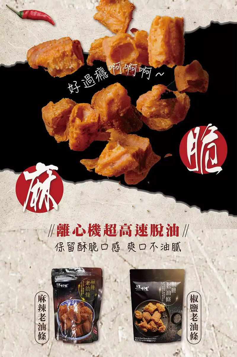 SW12 Pepper Salt Oil Fritters SW12 三五好友 椒鹽老油條 48g ⭐獨家工法製作,層次豐富,香酥可口。 ⭐當零食超涮嘴,放進泡麵吸附湯汁,搭配白粥增添香氣,搭配麻辣鍋香麻爽口。 ⭐多種吃法隨心所欲,搭配任何鍋物都好吃又過癮。 ⭐夾鏈袋包裝,方便食用好保存。..