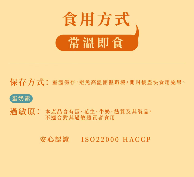▶️過敏源:本產品含有蛋,花生,牛奶,麩質及其製品,不適合對其過敏體質者食用。