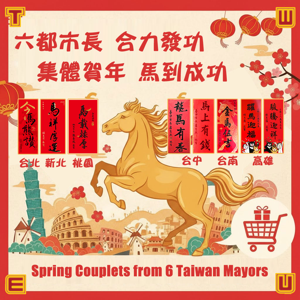 新年快樂!馬年到來,在歐洲過年是不是總覺得少了點什麼?沒錯!就是那份來自家鄉、充滿「政氣」的官方祝福啊!今年,我們特別為您準備了一份史無前例的「政壇大咖春聯」滿額贈活動,讓您在歐洲也能感受到來自台灣六都市長們的護持,親自為您「揮毫」賀年!